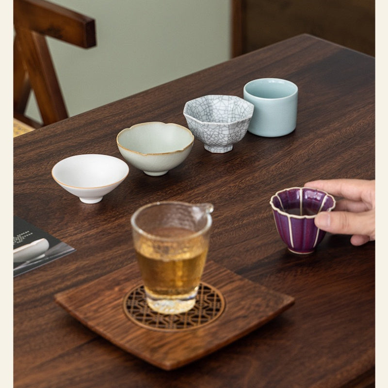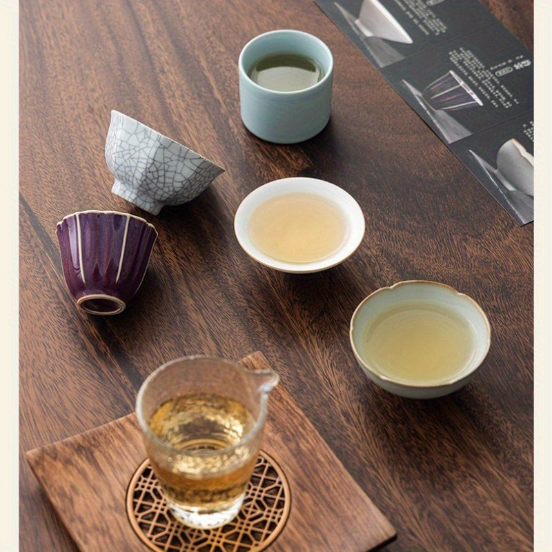 Five famous kiln collections Handmade ceramic teacup tea cup gift box set, high-end tea cup master cup tea set, home office business gifts, company Mid-Autumn Festival gifts, collection-level gifts
